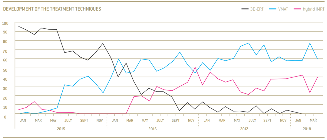 The possibility to start treating patients with VMAT was a key specification during the tender. The center still uses conventional treatment by the hybrid IMRT technique, but significantly less and mainly for cases of breast cancer. Around a year after implementing VMAT, half of all treatments were made using the treatment technique. The figure has since risen to around 70 percent, while remaining treatments are done with hybrid IMRT.